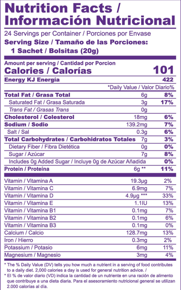 - Each single serve packet of Purelife Care+ Camelicious makes a 6 to 8 oz glass of milk.
